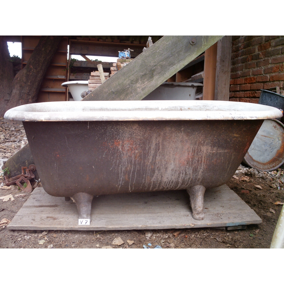 Použitá historická litinová vana volně stojící, smaltovaná. Smalt je poškozen a vana je určena k renovaci. Renovace se provádí akrylátovými nástřiky, takže při údržbě je s vanou nutné zacházet jako s akrylátovou, neumývat písky, nekoupat psy s drápky apod. K dispozici je cca 8 druhů nožek, ale ne každá nožka se hodí na každý typ vany, jelikož vany mají na sobě asi 4 druhy úchytů. Úpravy vany a doplňků se sjednávají individuálně. Uvedená cena za vanu je bez renovace a doplňků (přepad, přechodová spojka - kov/PE, nízký plastový sifon).